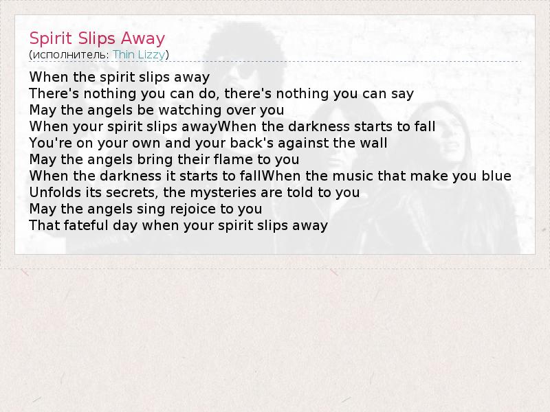 А как ты думаешь, о чем песня "Spirit Slips Away" ?