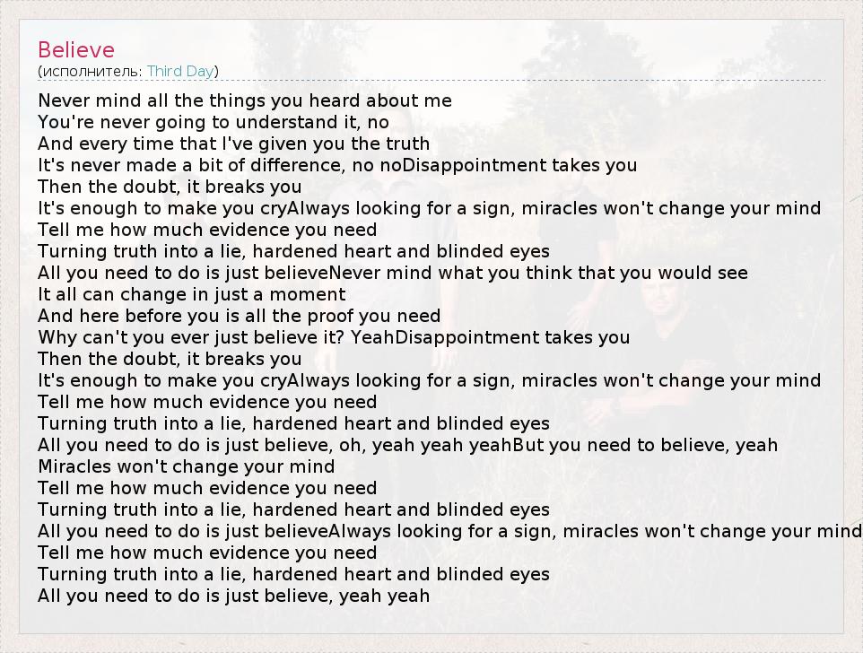All you need to do is just believeAlways looking for a sign, miracles won't change your mind
