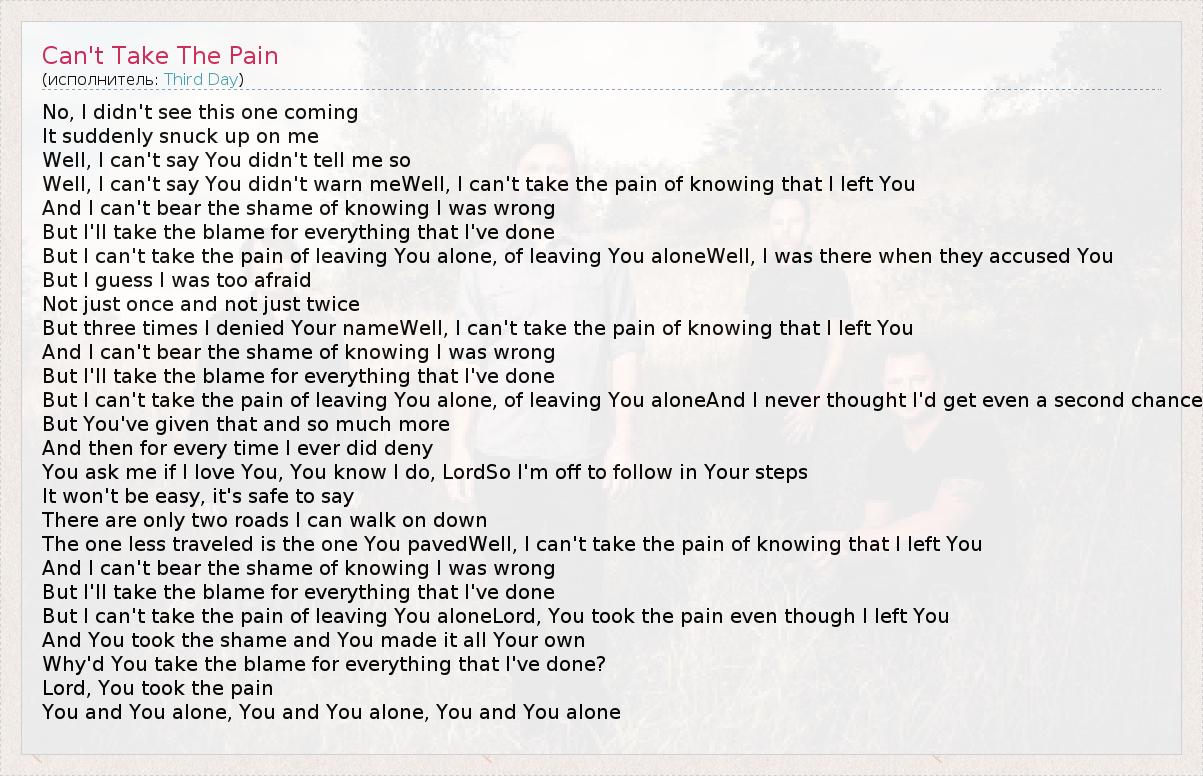 But I can't take the pain of leaving You aloneLord, You took the pain even though I left You