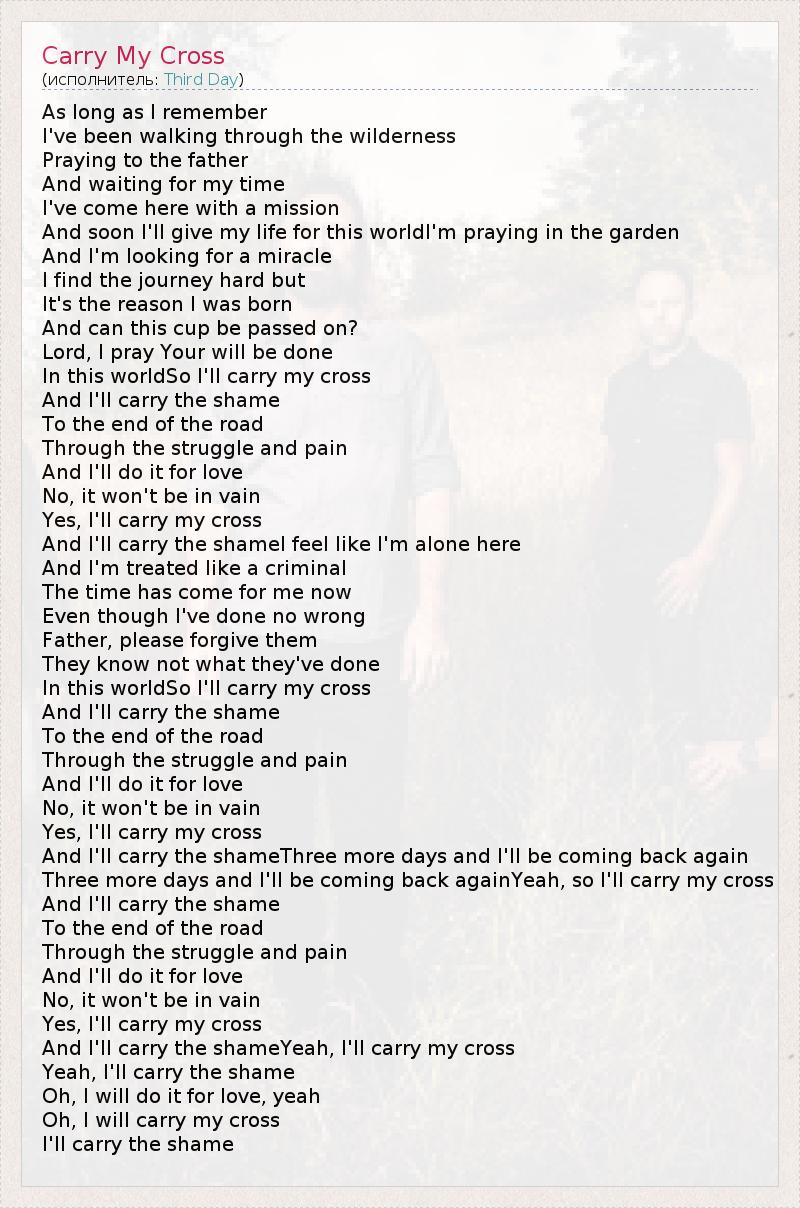 А как ты думаешь, о чем песня "Carry My Cross" ?