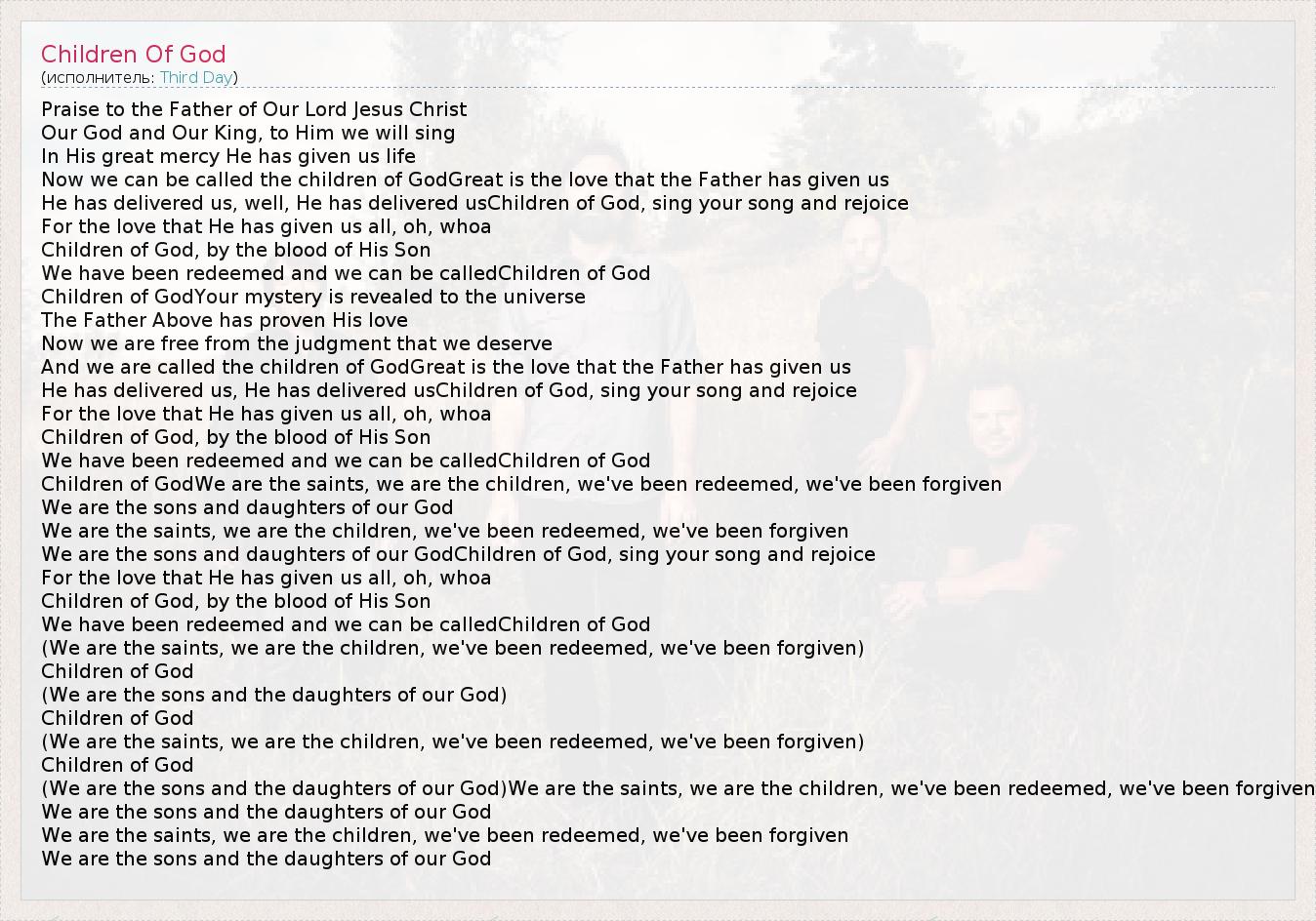 А как ты думаешь, о чем песня "Children Of God" ?