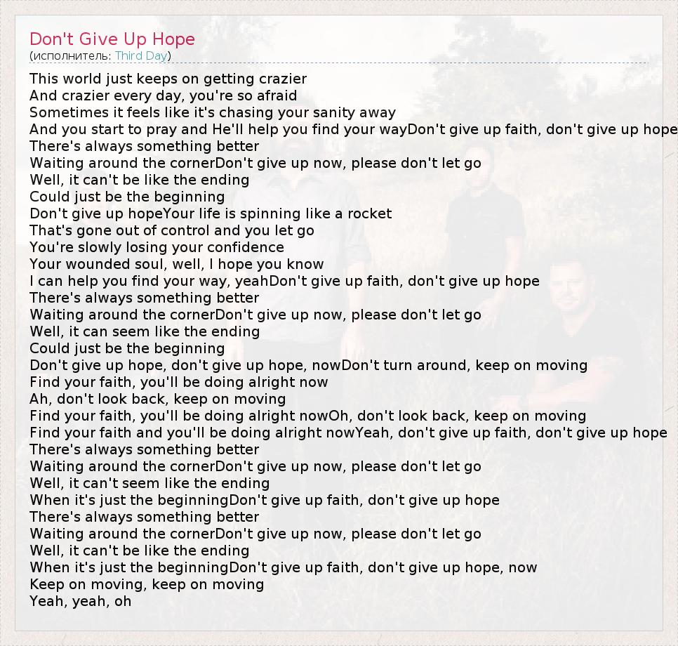 А как ты думаешь, о чем песня "Don't Give Up Hope" ?