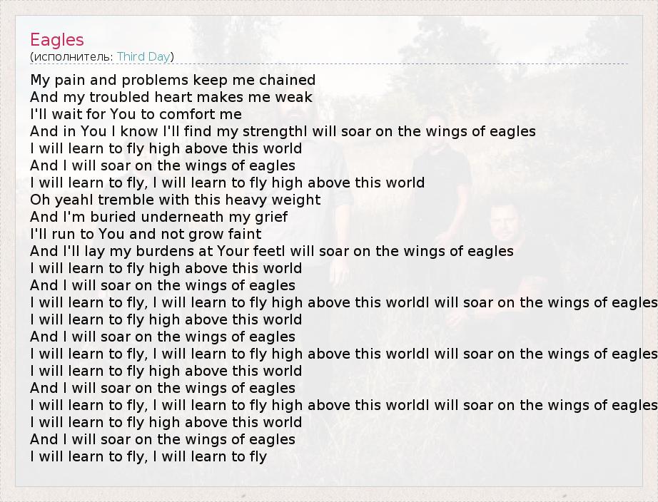 And in You I know I'll find my strengthI will soar on the wings of eagles