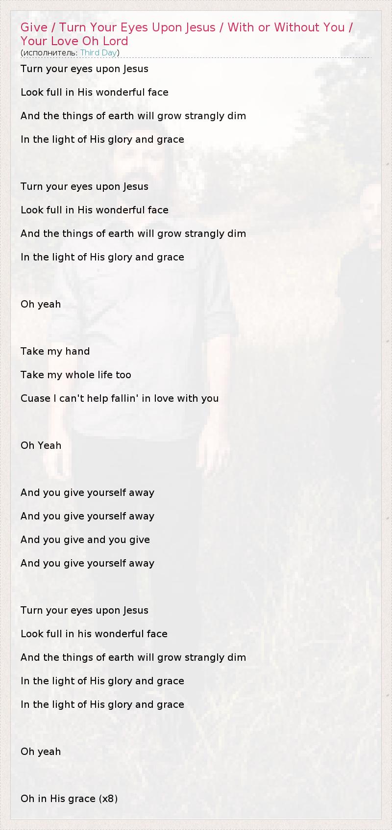 А как ты думаешь, о чем песня "Give / Turn Your Eyes Upon Jesus / With or Without You / Your Love Oh Lord" ?