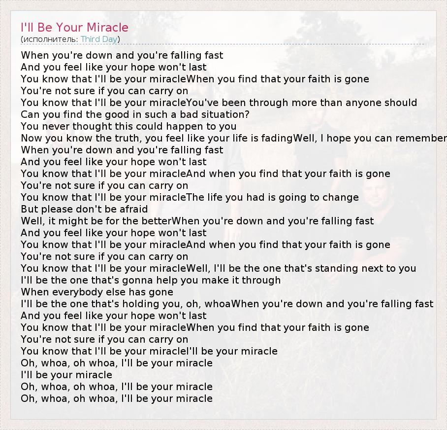 You know that I'll be your miracleAnd when you find that your faith is gone