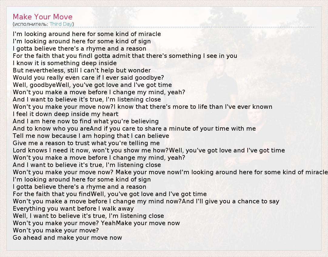 А как ты думаешь, о чем песня "Make Your Move" ?