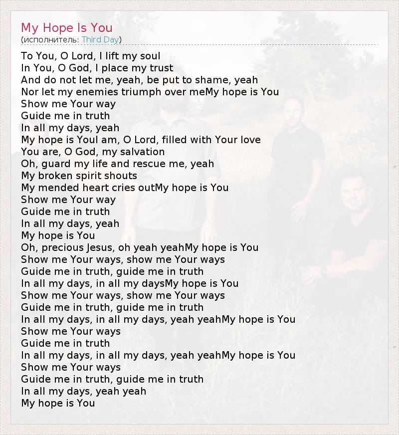 А как ты думаешь, о чем песня "My Hope Is You" ?