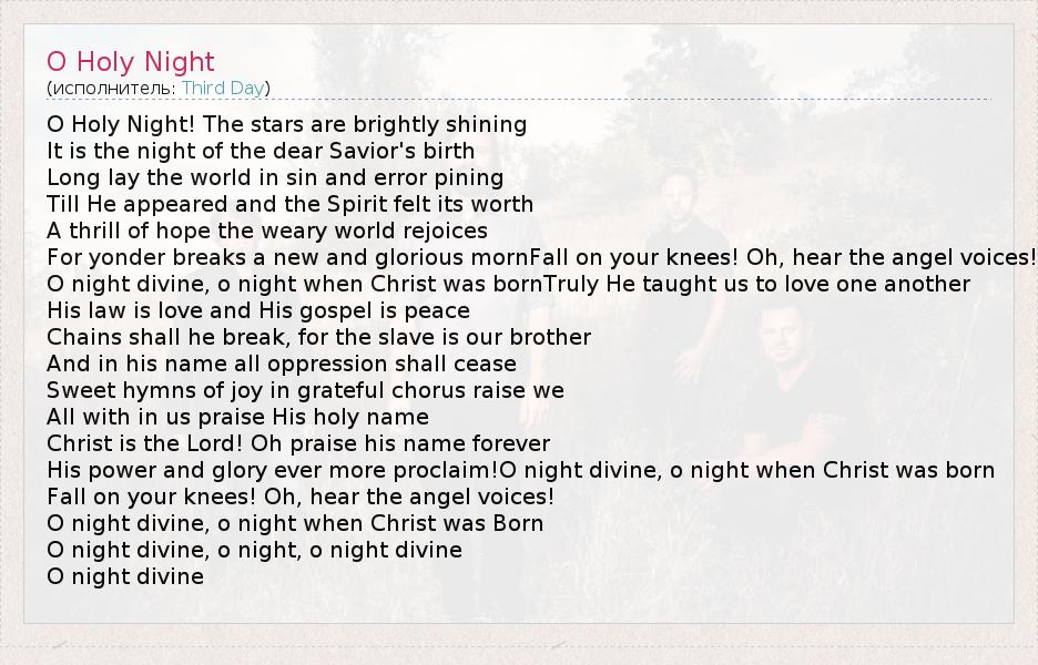 А как ты думаешь, о чем песня "O Holy Night" ?