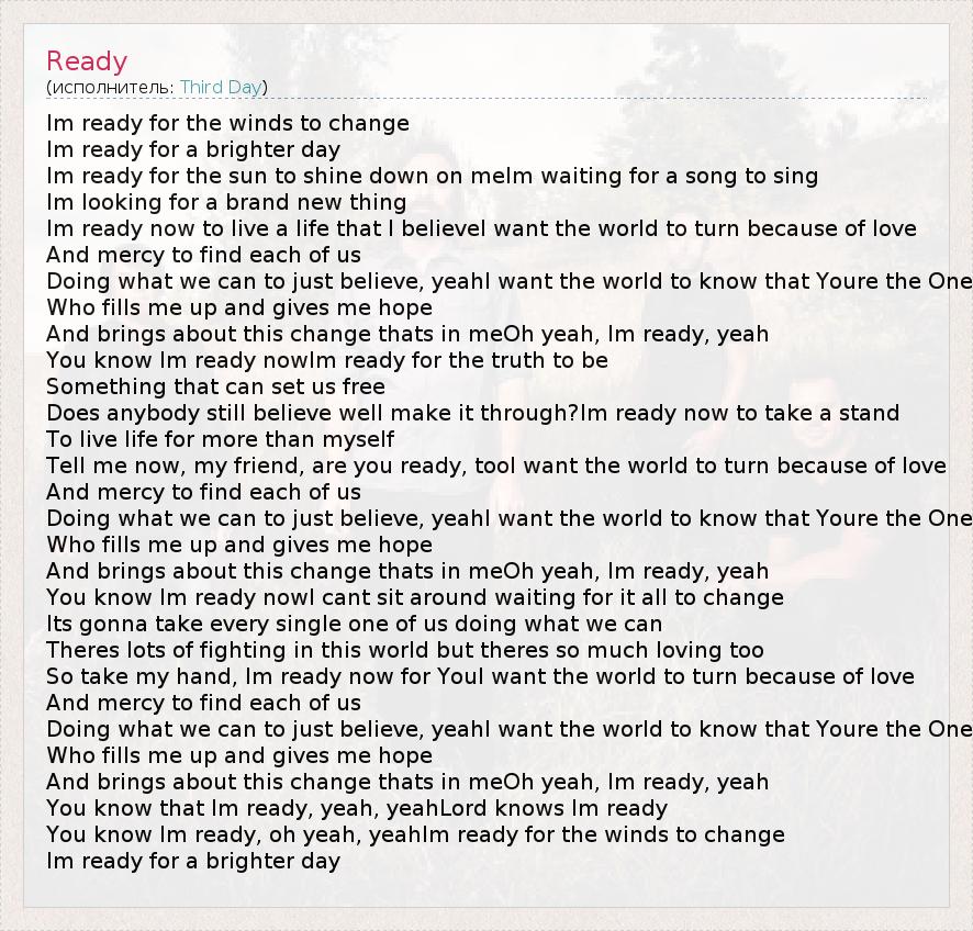 You know Im ready, oh yeah, yeahIm ready for the winds to change