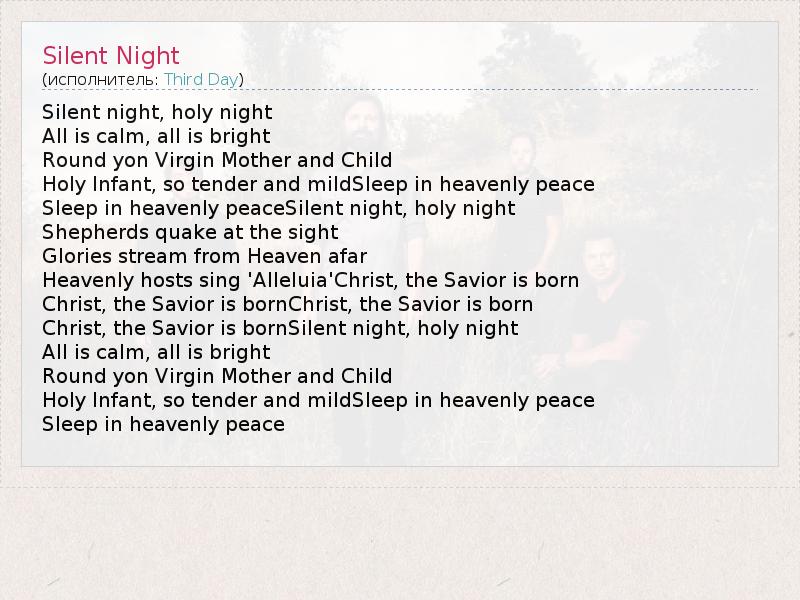 Это интересно:Third Day была основана в начале 90-х годов вокалистом Маком Пауэллом и гитаристом Марком Ли. Название группы - это еще одно напоминание о том, что Иисус воскрес из мертвых на третий день.За годы творчества музыканты группы выпустили много потрясающих альбомов, за три из которых ("Wire", "Come Together" и "Wherever You Are") они были удостоины премии Грэмми.