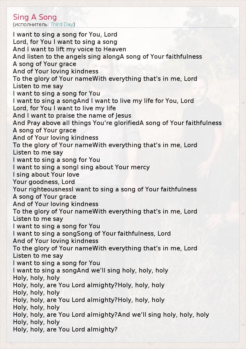I want to sing a song for You, Lord