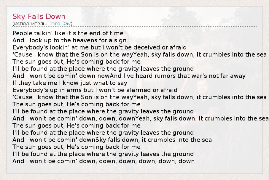 А как ты думаешь, о чем песня "Sky Falls Down" ?