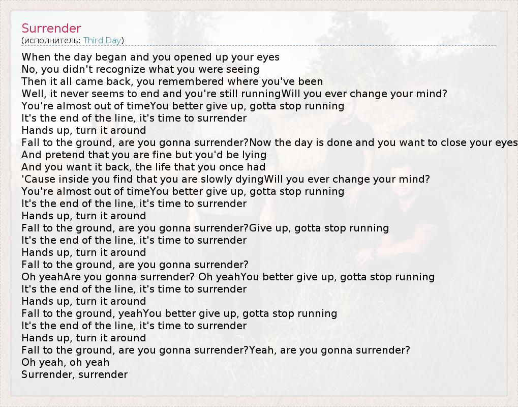 Fall to the ground, are you gonna surrender?Now the day is done and you want to close your eyes