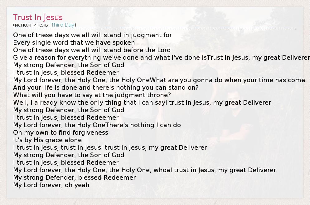 А как ты думаешь, о чем песня "Trust In Jesus" ?