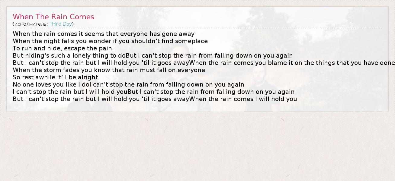 А как ты думаешь, о чем песня "When The Rain Comes" ?