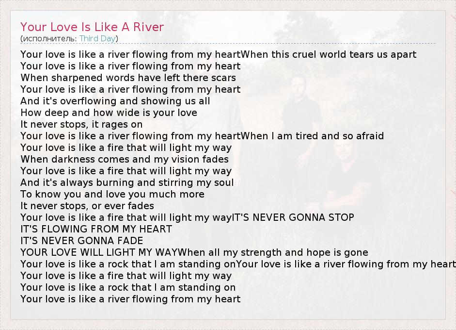 А как ты думаешь, о чем песня "Your Love Is Like A River" ?