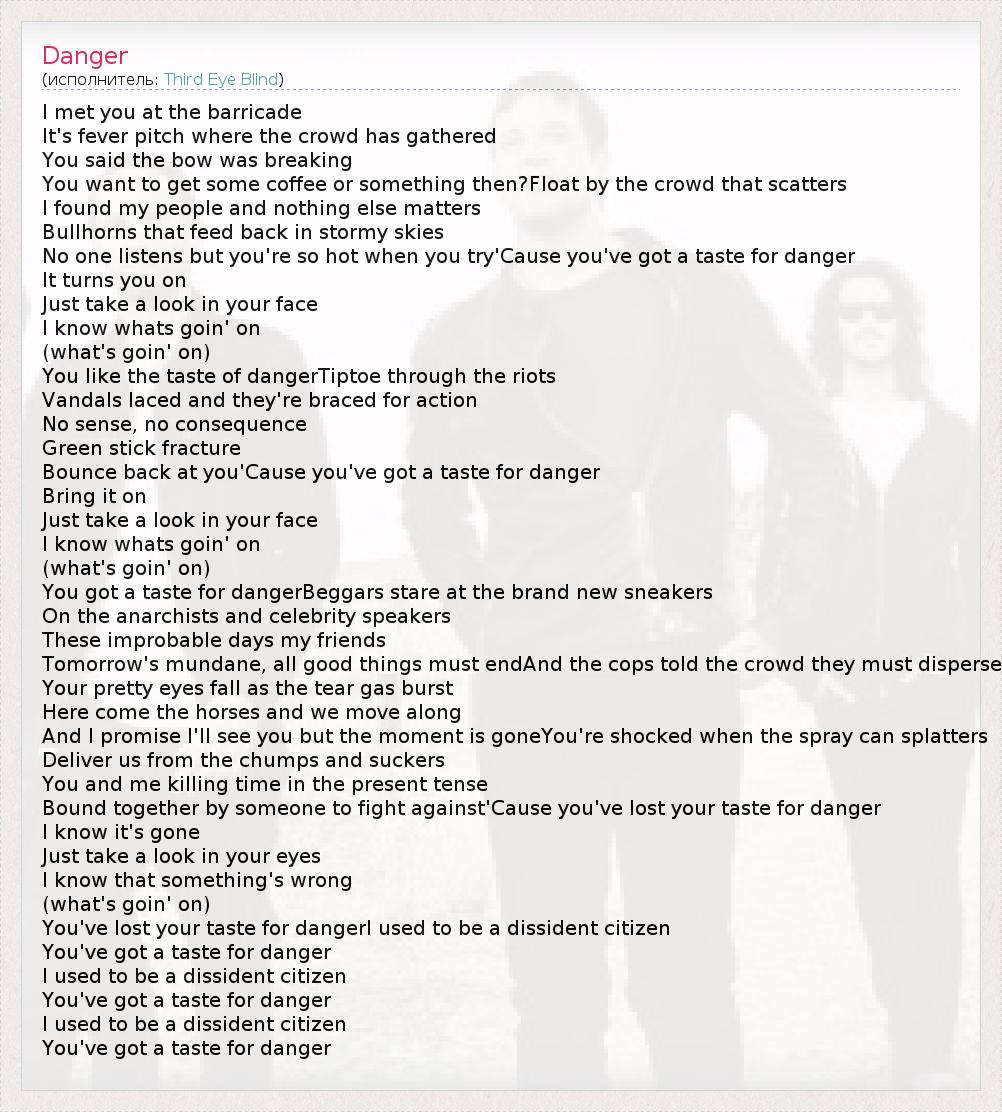 No one listens but you're so hot when you try'Cause you've got a taste for danger