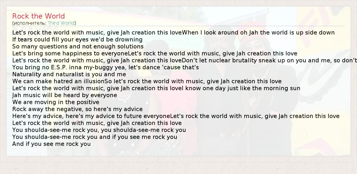 А как ты думаешь, о чем песня "Rock the World" ?