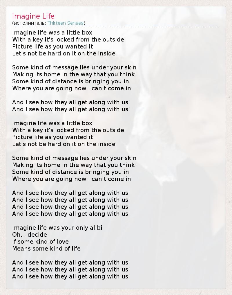 А как ты думаешь, о чем песня "Imagine Life" ?