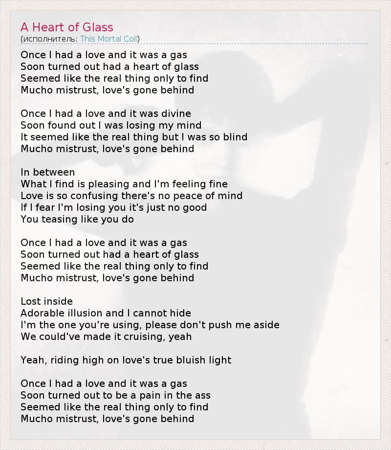 А как ты думаешь, о чем песня "A Heart of Glass" ?