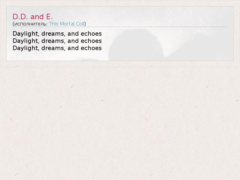 А как ты думаешь, о чем песня "D.D. and E." ?