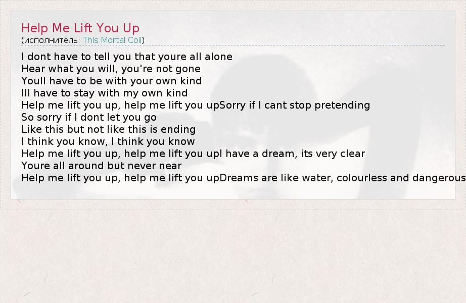 А как ты думаешь, о чем песня "Help Me Lift You Up" ?