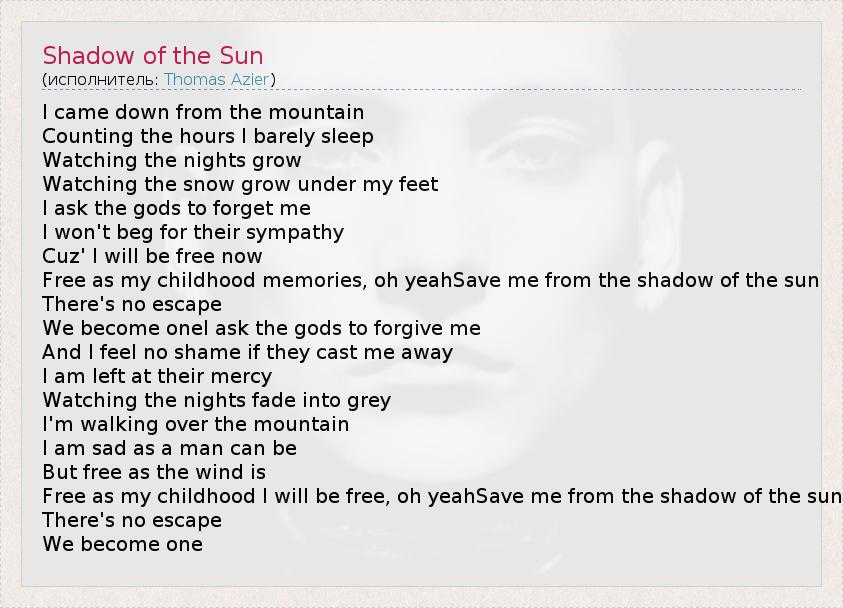 А как ты думаешь, о чем песня "Shadow of the Sun" ?
