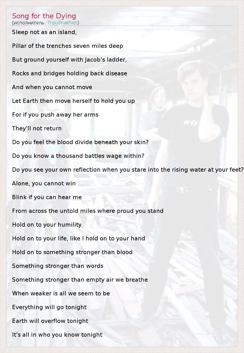 А как ты думаешь, о чем песня "Song for the Dying" ?