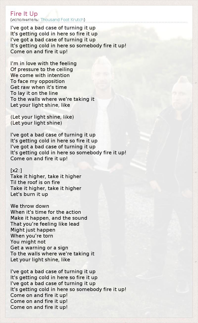 А как ты думаешь, о чем песня "Fire It Up" ?
