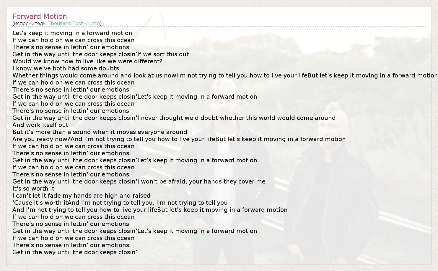 А как ты думаешь, о чем песня "Forward Motion" ?