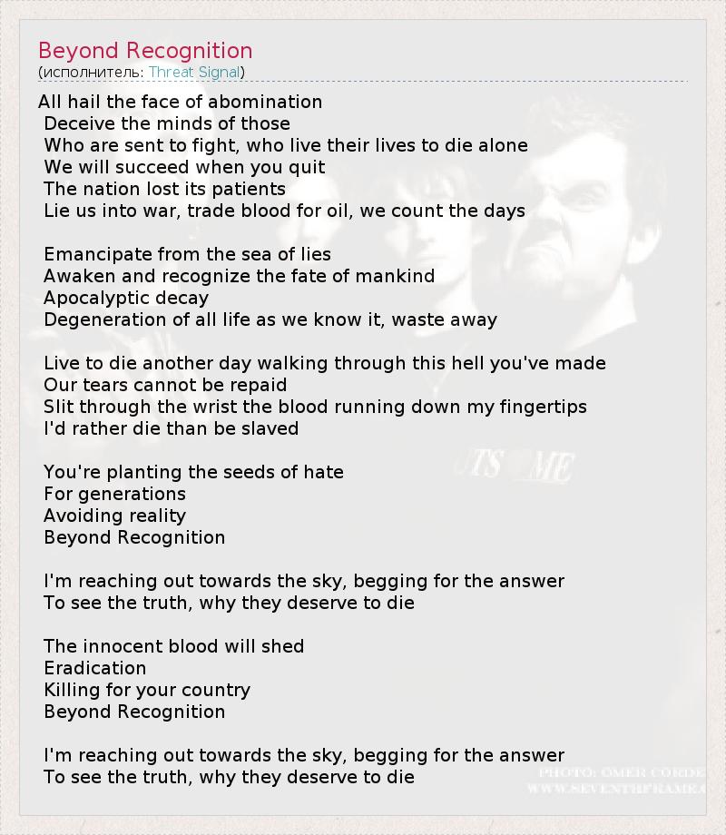 А как ты думаешь, о чем песня "Beyond Recognition" ?