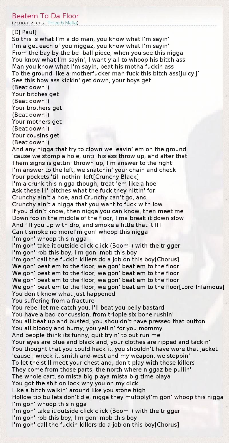 А как ты думаешь, о чем песня "Beatem To Da Floor" ?