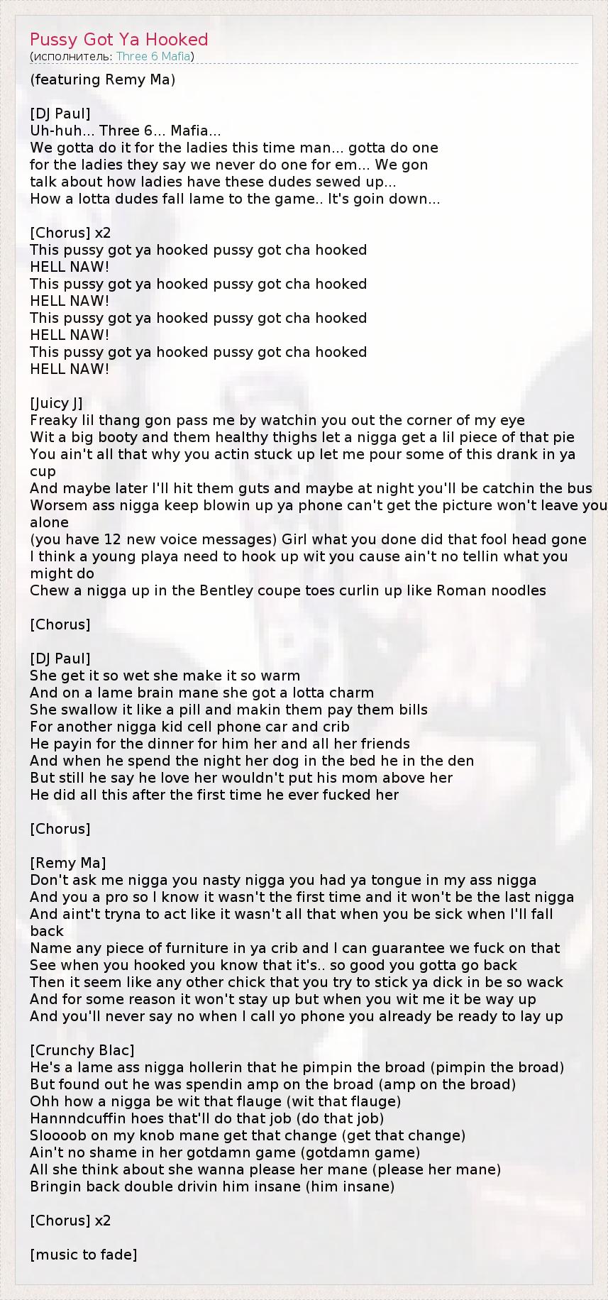 А как ты думаешь, о чем песня "Pussy Got Ya Hooked" ?