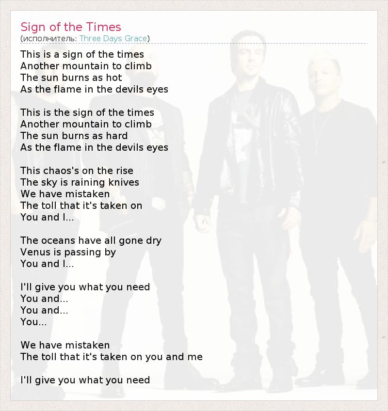А как ты думаешь, о чем песня "Sign of the Times" ?