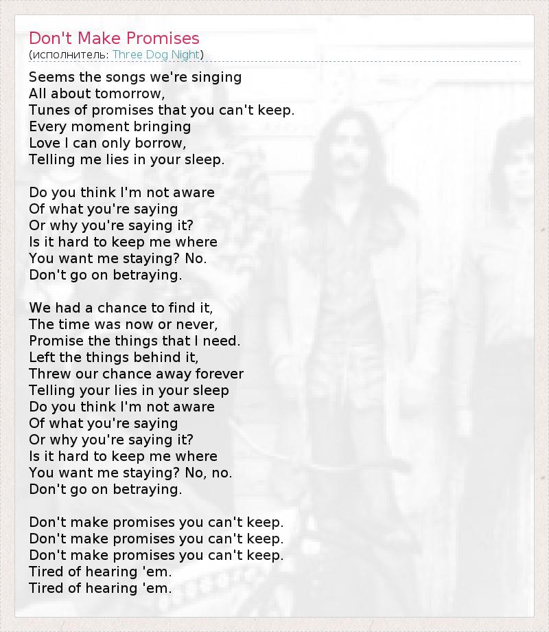 А как ты думаешь, о чем песня "Don't Make Promises" ?