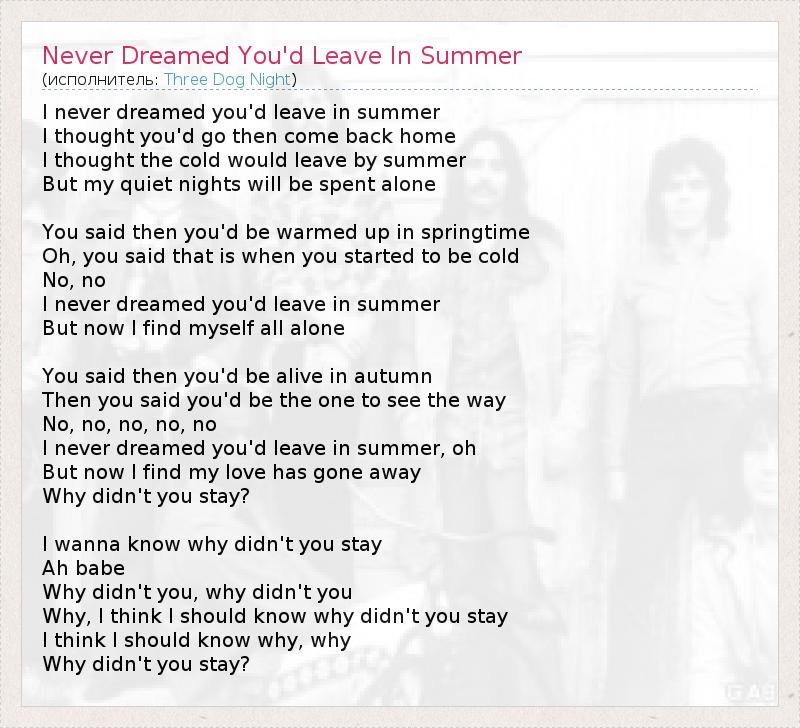 А как ты думаешь, о чем песня "Never Dreamed You'd Leave In Summer" ?