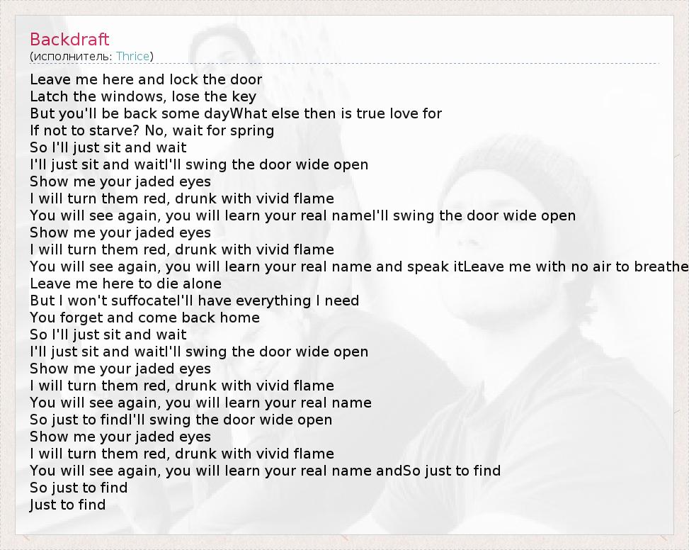 А как ты думаешь, о чем песня "Backdraft" ?