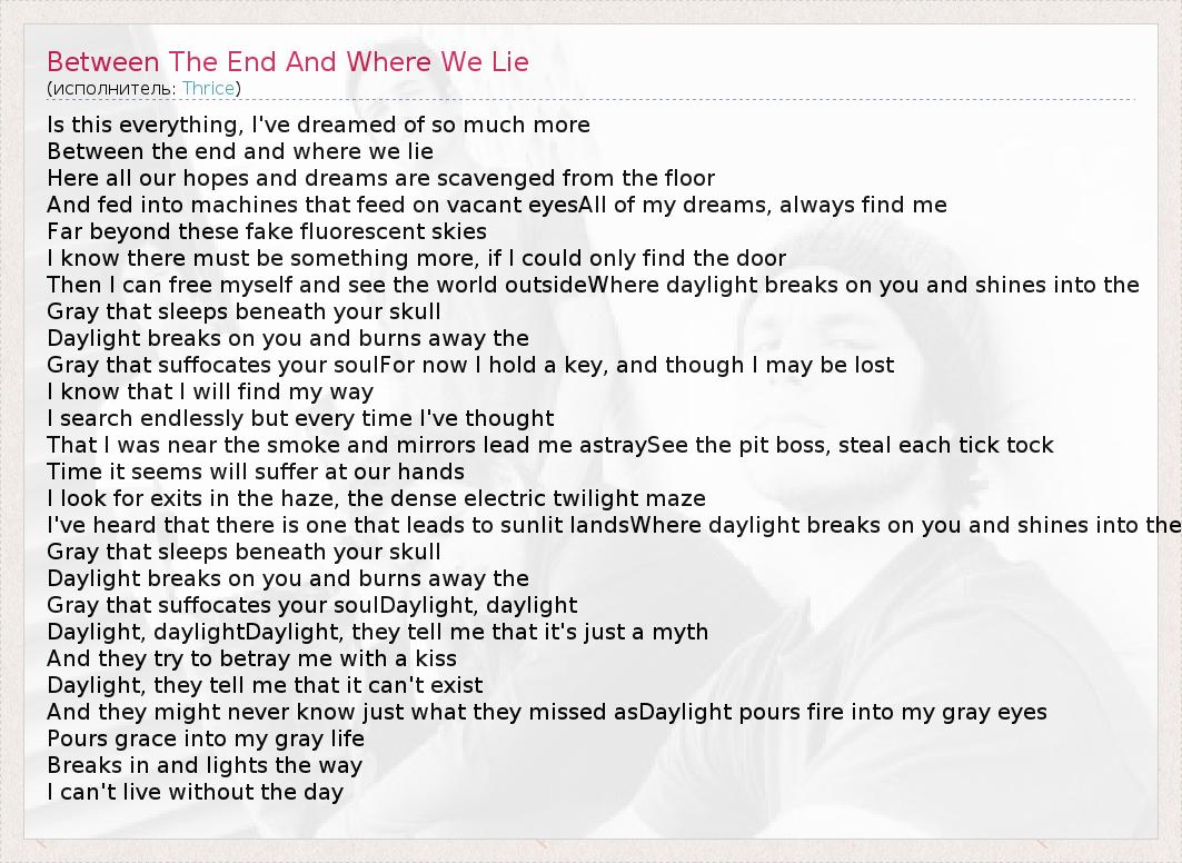 А как ты думаешь, о чем песня "Between The End And Where We Lie" ?