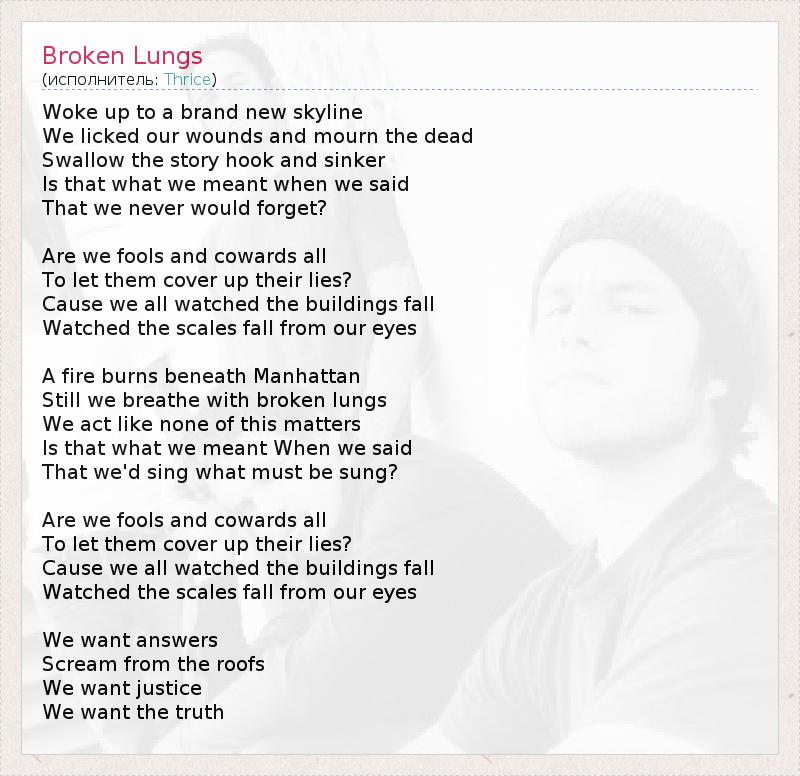 А как ты думаешь, о чем песня "Broken Lungs" ?