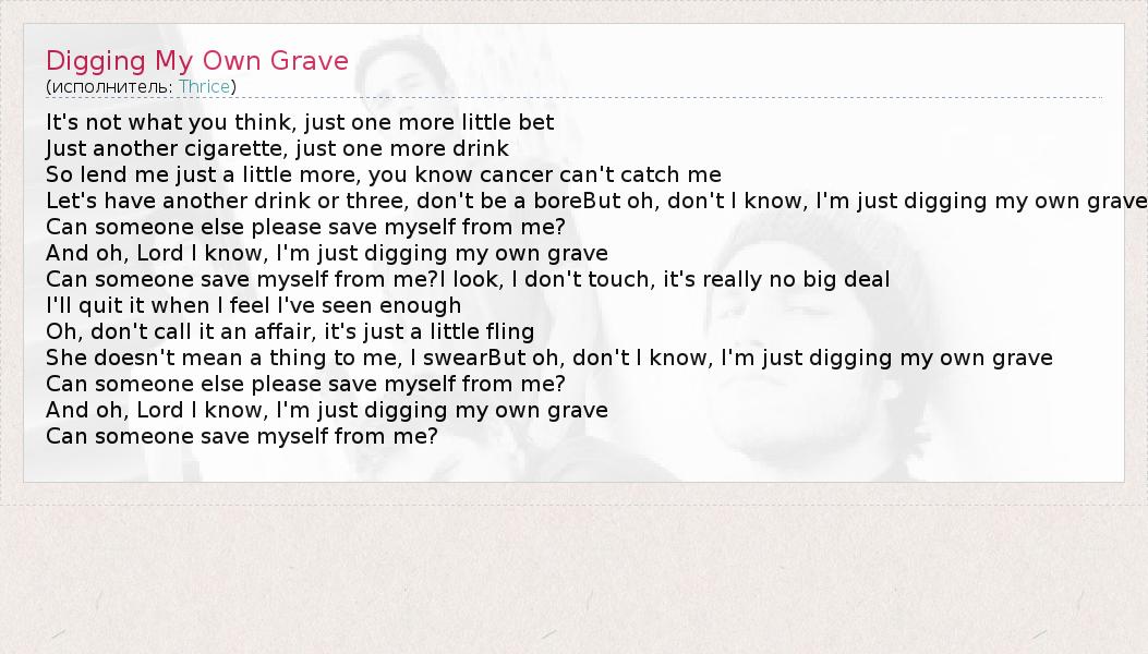ГлавнаяИсполнителиThriceDigging My Own Grave