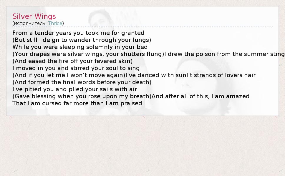 А как ты думаешь, о чем песня "Silver Wings" ?