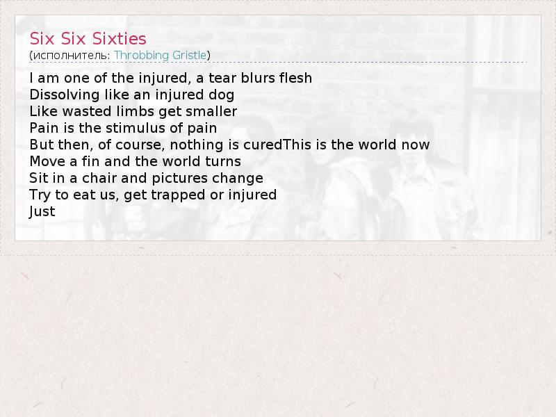 А как ты думаешь, о чем песня "Six Six Sixties" ?