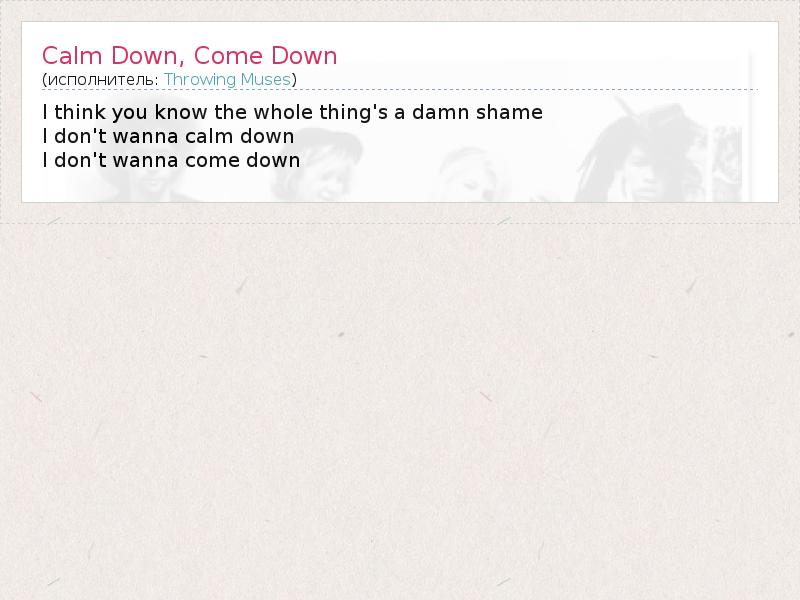 А как ты думаешь, о чем песня "Calm Down, Come Down" ?