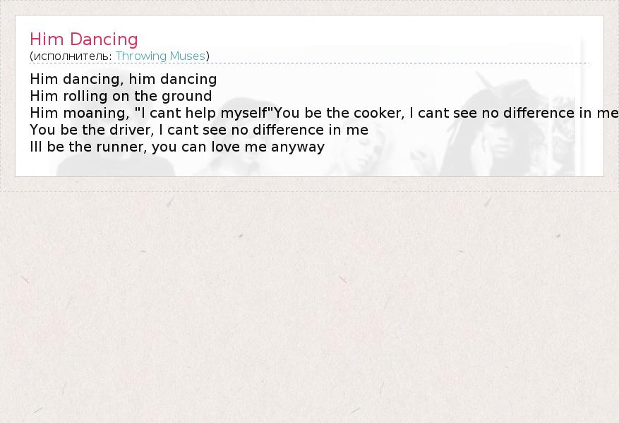 А как ты думаешь, о чем песня "Him Dancing" ?
