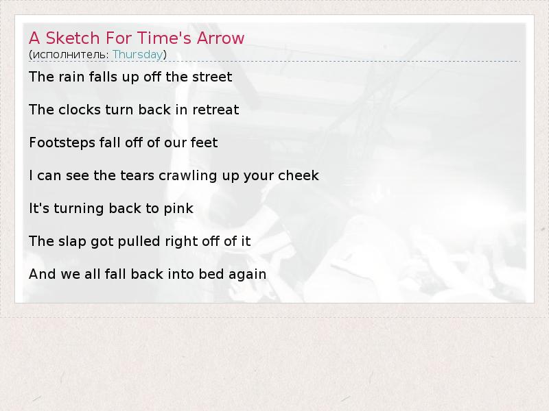 А как ты думаешь, о чем песня "A Sketch For Time's Arrow" ?