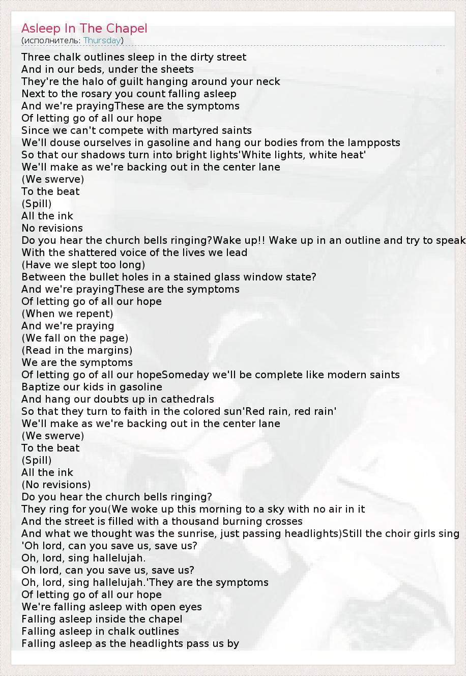А как ты думаешь, о чем песня "Asleep In The Chapel" ?
