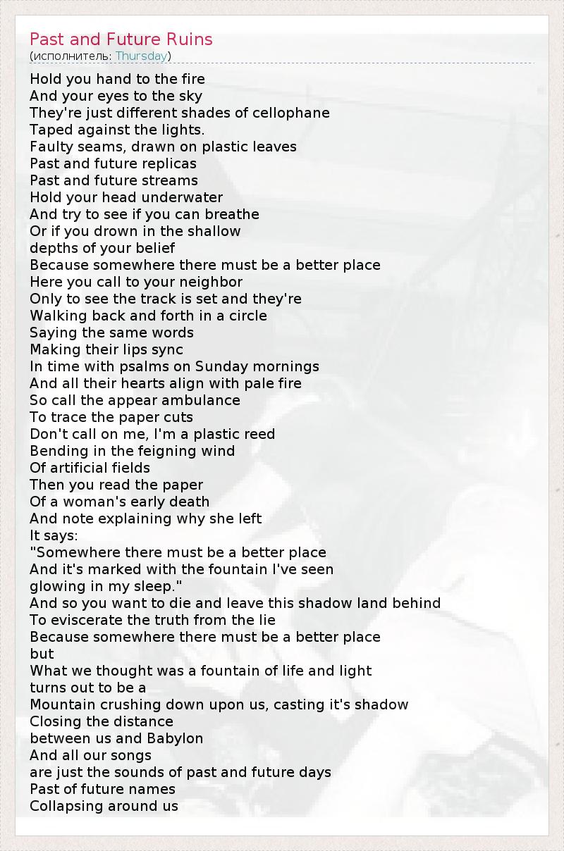 А как ты думаешь, о чем песня "Past and Future Ruins" ?