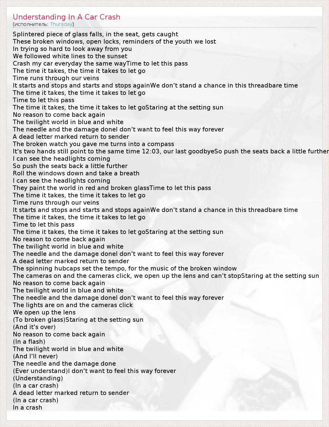 А как ты думаешь, о чем песня "Understanding In A Car Crash" ?