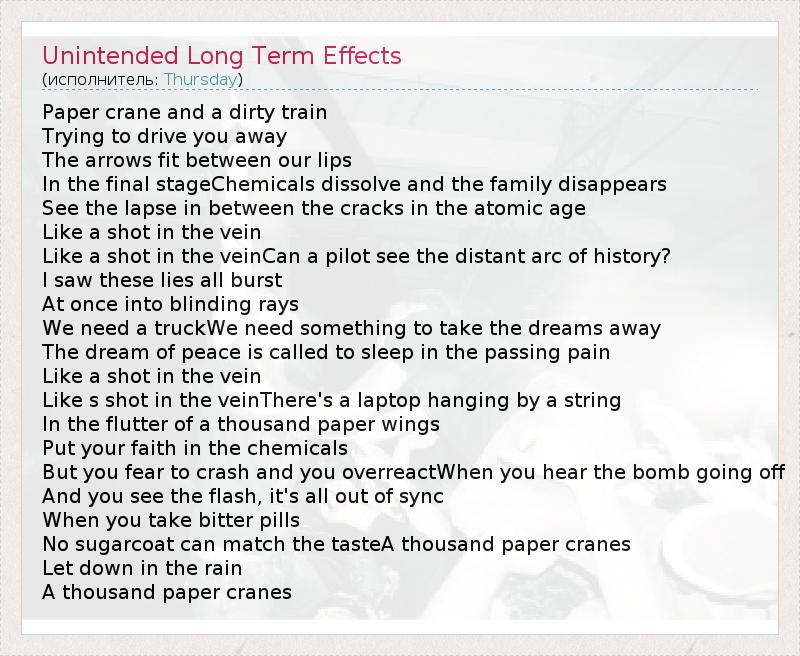 А как ты думаешь, о чем песня "Unintended Long Term Effects" ?