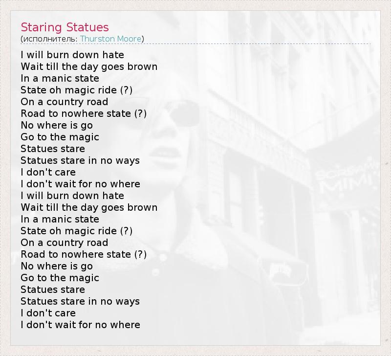 А как ты думаешь, о чем песня "Staring Statues" ?